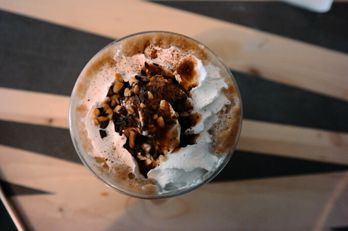 これはダミーです。北欧式の浅煎りコーヒーが特徴的なコーヒーは、注文を受けてから作る、空気圧を利用してコーヒーをジュースのように絞り出す「エアロプレス コーヒー」が看板メニューです。その他にも、ペーパーフィルターで一杯ずつ淹れる「ハンドドリップ コーヒー」、すぐに出てくる「TODAY'S COFFEE」があります。